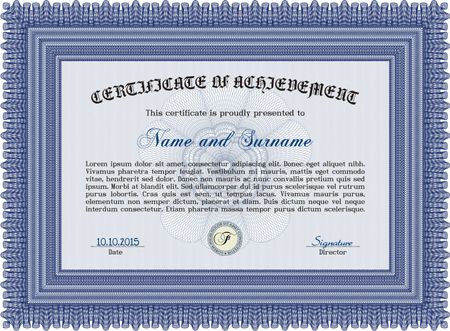 Certificate of achievement. Excellent design. With complex background. Border, frame.