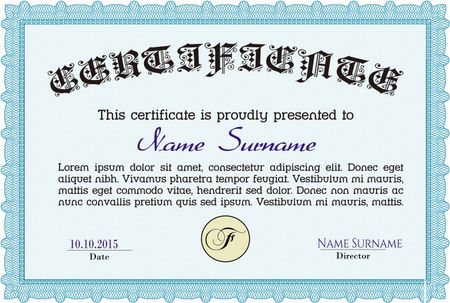 Certificate of achievement. With guilloche pattern and background. Detailed.Beauty design.