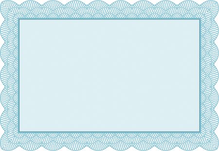 Certificate of achievement. With guilloche pattern and background. Sophisticated design. Diploma of completion. Light blue color.