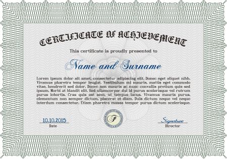 Certificate of achievement. Money style.Beauty design. With complex background.