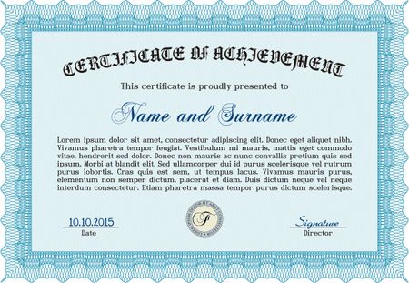 Certificate of achievement template. Artistry design. Frame certificate template Vector.With great quality guilloche pattern.