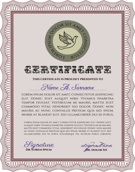 Certificate of achievement template. Artistry design. Frame certificate template Vector.With great quality guilloche pattern.