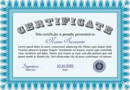 Certificate of achievement template. Border, frame.Sophisticated design. With quality background.