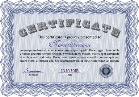 Certificate of achievement template. Complex background. Superior design. Frame certificate template Vector.