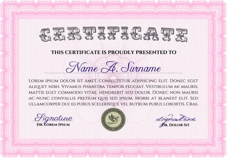 Certificate of achievement template. Complex design. With great quality guilloche pattern. Detailed.