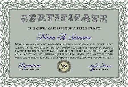 Certificate of achievement template. Cordial design. Complex background. Vector illustration.
