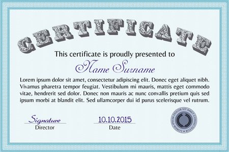 Certificate of achievement template. Vector illustration.Modern design. With guilloche pattern and background.