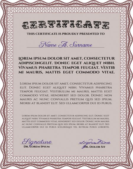 Certificate of achievement template. Vector pattern that is used in money and certificate.With complex background. Good design.