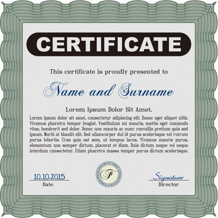 Certificate of achievement template. Vector pattern that is used in currency and diplomas.Complex background. Cordial design.