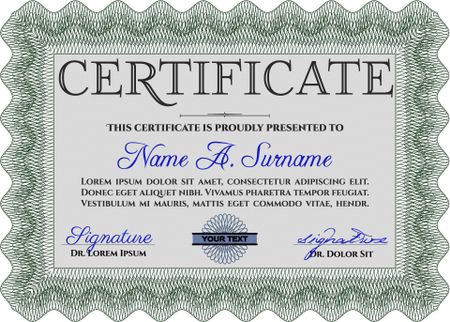 Certificate of achievement. Vector certificate template. Retro design. With complex linear background. Green color.