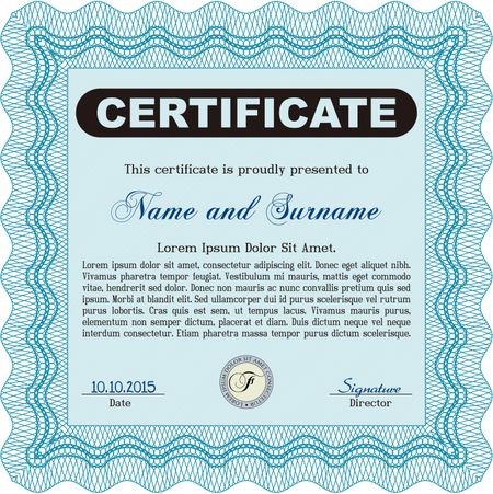 Certificate. Artistry design. Vector illustration.With complex background.