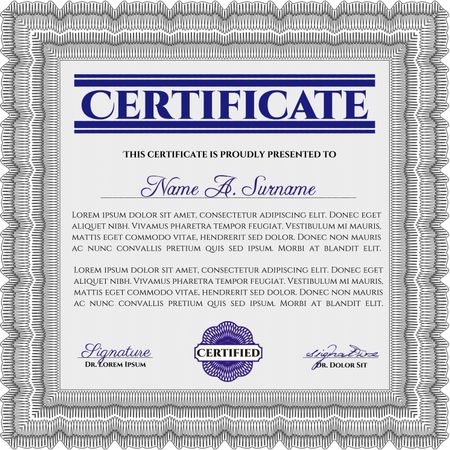 Certificate. Complex design. Detailed. Printer friendly. Grey color.