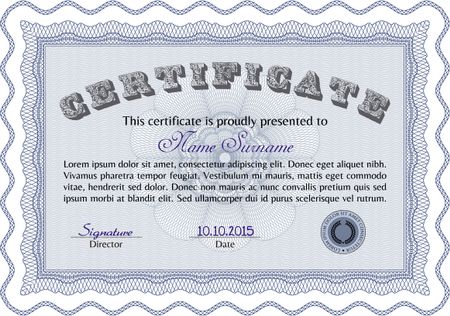 Certificate, Diploma of completion; design template with guilloche pattern, border, frame.