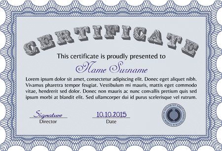 Certificate, Diploma of completion; design template with guilloche pattern, border, frame.