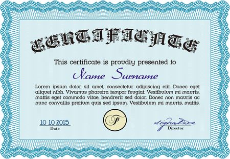 Certificate, Diploma of completion with guilloche pattern and background, border, frame. Certificate of Achievement, Certificate of education, awards, winner.