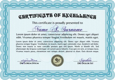 Certificate, Diploma of completion with guilloche pattern and background, border, frame. Certificate of Achievement, Certificate of education, awards, winner.