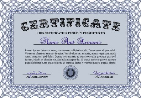 Certificate. Diploma of completion.With guilloche pattern. Excellent design.