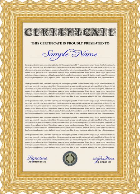 Certificate or diploma template. Cordial design. Customizable, Easy to edit and change colors. Easy to print. Orange color.