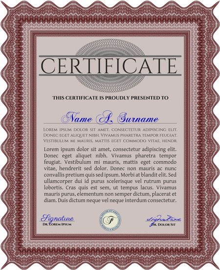 Certificate or diploma template. Customizable, Easy to edit and change colors. Cordial design. Easy to print. Red color.