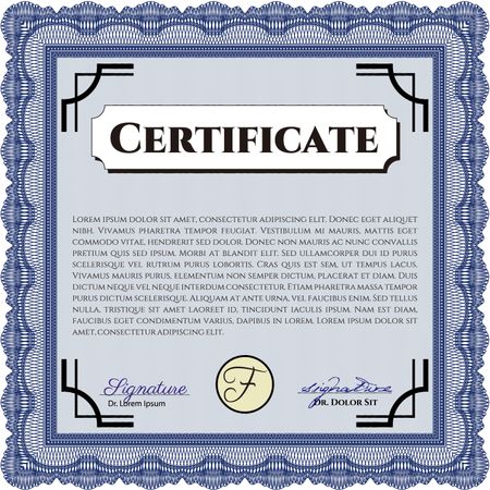 Certificate or diploma template. Easy to print. Customizable, Easy to edit and change colors. Cordial design. Blue color.