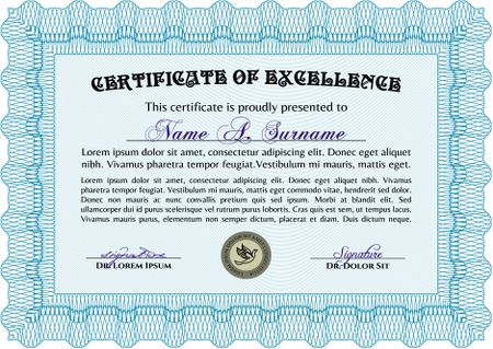 Certificate or diploma template. Frame certificate template Vector.With guilloche pattern and background. Excellent design.