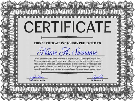 Certificate or diploma template. Good design. With background. Border, frame. Grey color.