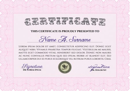 Certificate or diploma template. Modern design. With linear background. Detailed.