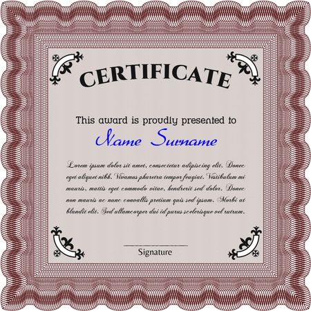 Certificate or diploma template. Nice design. Vector illustration.With great quality guilloche pattern.