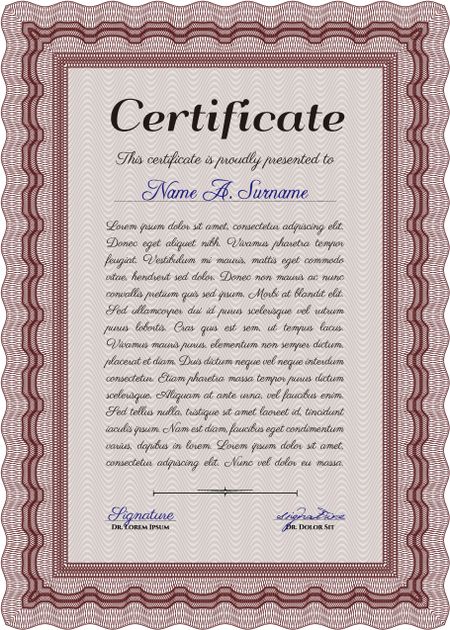 Certificate. Frame certificate template Vector.Lovely design. With complex background.
