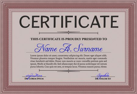 Certificate. Printer friendly. Complex design. Detailed. Red color.