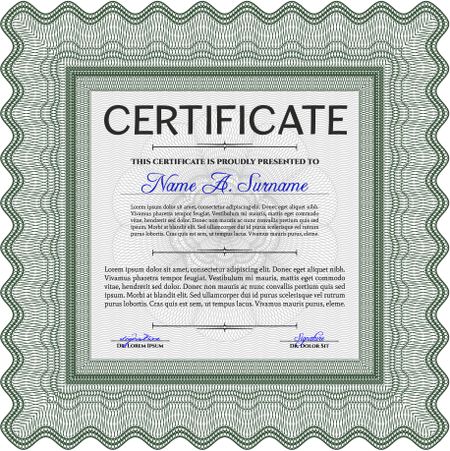 Certificate. Printer friendly. Complex design. Detailed. Green color.