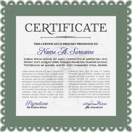 Certificate. Printer friendly. Detailed. Complex design. Green color.