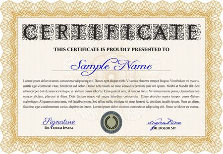 Certificate template. Cordial design. Customizable, Easy to edit and change colors. Easy to print. Orange color.