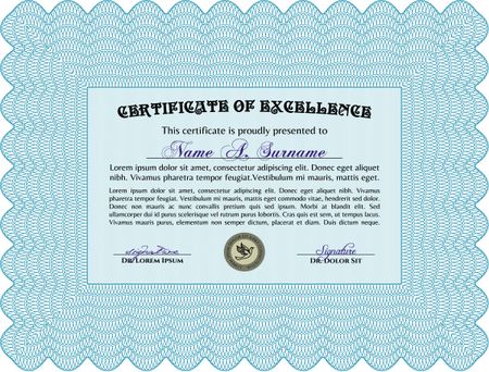 Certificate template. Customizable, Easy to edit and change colors. Easy to print. Nice design. Light blue color.