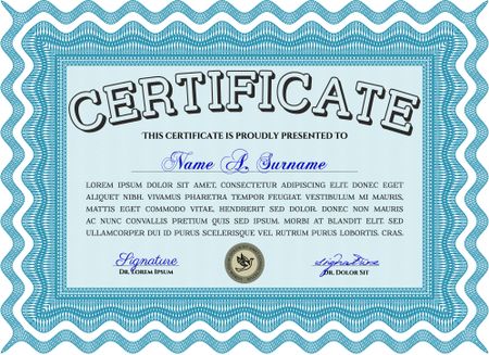 Certificate template. Detailed. Printer friendly. Nice design. Light blue color.