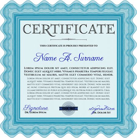 Certificate template or diploma template. Complex background. Vector pattern that is used in currency and diplomas.Beauty design. Light blue color.