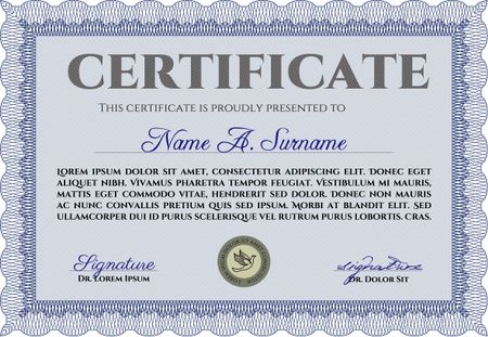 Certificate template or diploma template. Complex design. Vector certificate template.With guilloche pattern and background.