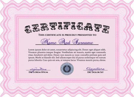 Certificate template or diploma template. With great quality guilloche pattern. Artistry design. Border, frame.