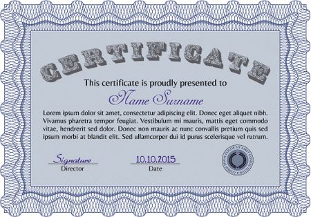 Certificate template or diploma template. With great quality guilloche pattern. Elegant design. Border, frame.