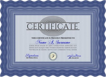 Certificate template or diploma template. With guilloche pattern and background. Money style.Cordial design.