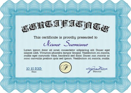 Certificate template. Easy to print. Cordial design. Customizable, Easy to edit and change colors. Light blue color.