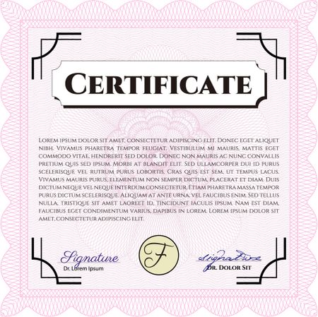 Certificate template. Nice design. Printer friendly. Detailed. Pink color.