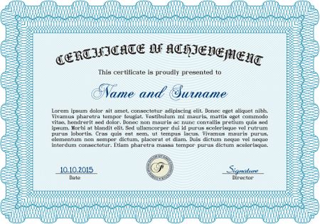 Certificate template. Printer friendly. Nice design. Detailed. Light blue color.