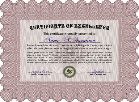 Certificate. Vector illustration.With complex background. Sophisticated design.