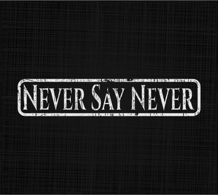 Never Say Never chalkboard emblem on black board