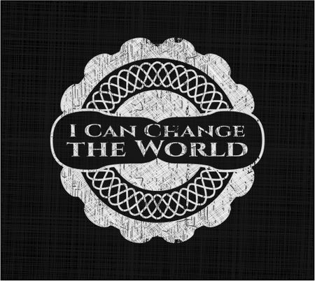 I Can Change the World chalk emblem, retro style, chalk or chalkboard texture