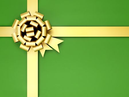 Christmas present wrapped in green with a gold ribbon