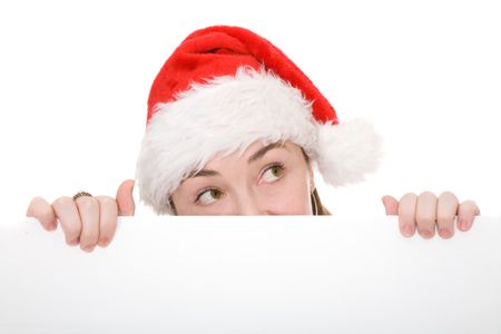 christmas santa claus peeping over a white card