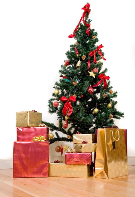 christmas tree at home on a wooden floor