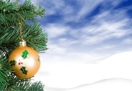 christmas tree with a winter scene in the background